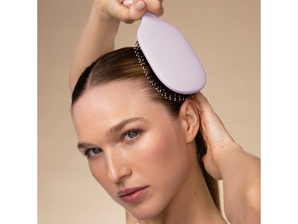 Kartáč s dvojími štětinami šetrně rozčeše vlasy, uhladí je a dodá lesk bez tahání. Podporuje zdravou pokožku hlavy a omezuje lámání i krepatění.