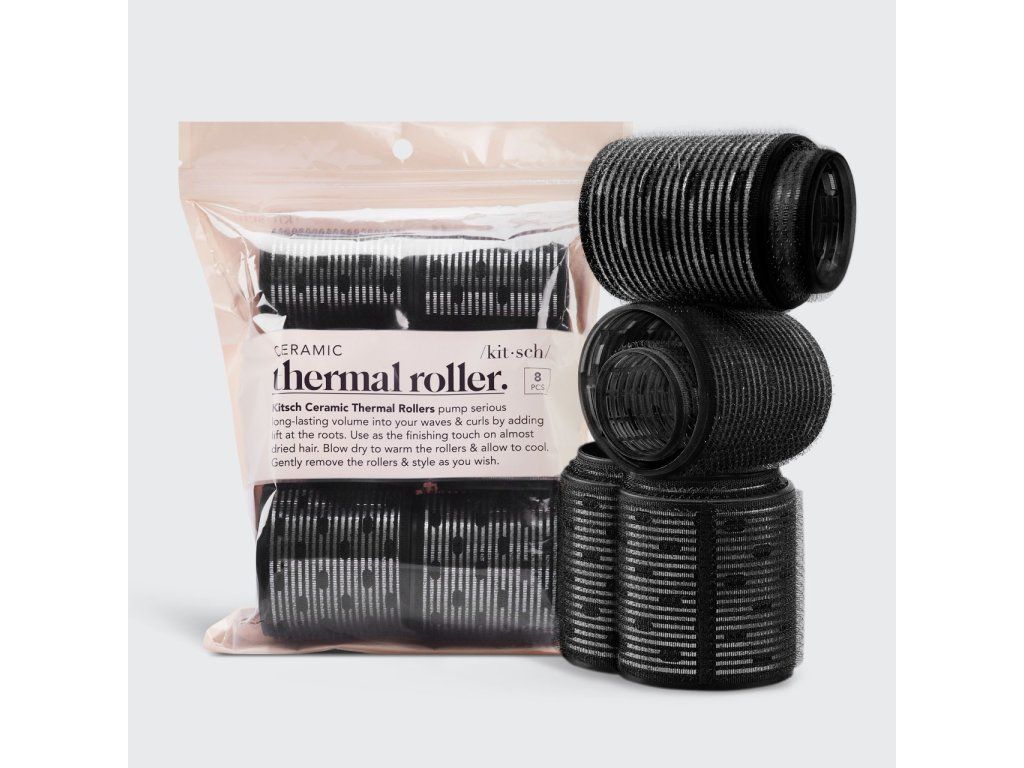 Keramické termonatáčky KITSCH dodají vlnám a kudrlinám dlouhotrvající objem tím, že nadzvednou vlasy od kořínků. Používejte je jako finální krok na téměř suché vlasy. Pro nejlepší výsledek u vlnitých vlasů vlasy nejprve vyfoukejte dohladka a natáčky aplikujte ještě na teplé vlasy.